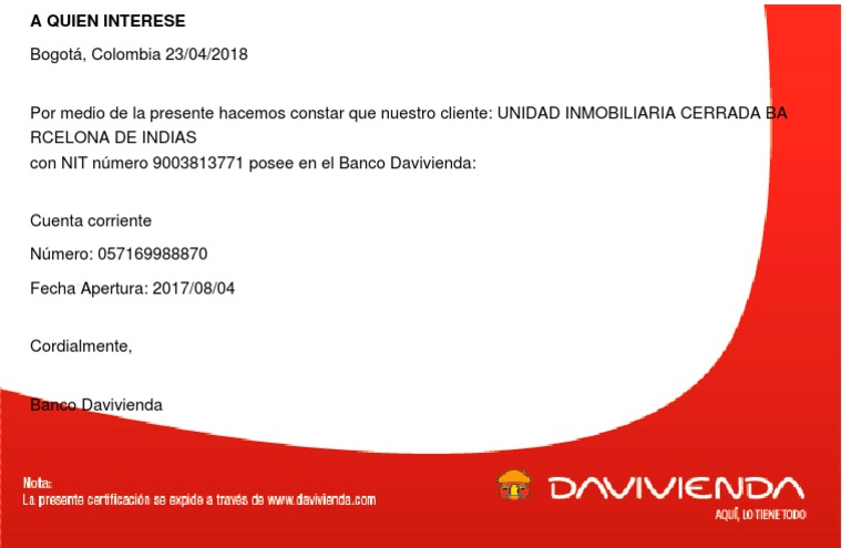 Davivienda no ofrece página de rastreo, si deseas comunicarte directamente con banco, puedes hacerlo mediante su página y consultarle cualquier duda o puedes. Explore fundacion al verde vivo's photos on flickr. Davivienda is a colombian bank founded in 1972 that renders services to individuals, companies, and the rural sector. Since colombia's banco davivienda began using oracle marketing cloud, communications have taken a vital role—doubling monthly billing on bank customer. Acceso directo davivienda en línea. Buscador de sucursales bancarias de davivienda. Davivienda, tiene el compromiso de proteger su privacidad y la integridad de su información personal y financiera. Noticias de davivienda, imágenes, fotos, galerías y videos de davivienda. Bienvenido al canal oficial del banco davivienda. Aquí celebramos experiencias que alegran la vida #experienciasdavivienda conozca más haciendo click aquí www.experienciasdavivienda.com. And in may, 2006 it merged with. A continuación se definen recomendaciones para su seguridad. Davivienda, tiene el compromiso de proteger su privacidad y la integridad de su información personal y financiera.