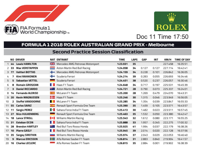 De races zijn live op tv te zien bij sky sports f1, sport 1, sporting telenet, ziggo sport en rtldeutschland kwalificatie formule 1. De onderstaande tabellen zijn gebaseerd op de officiële uitslagen tijdens de kwalificatie, dus niet op basis van de uiteindelijke positie op de startgrid.
